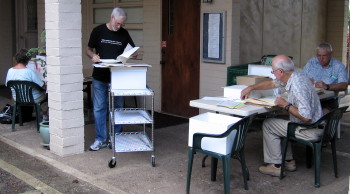 A Busy Saturday at LCH: The Archives Work Group sorting and processing materials from the LCH archives. Helping out in September were Marlise Tellander, Jim Cartwright, Chuck Huxel, and Jean-Paul Klingebiel.